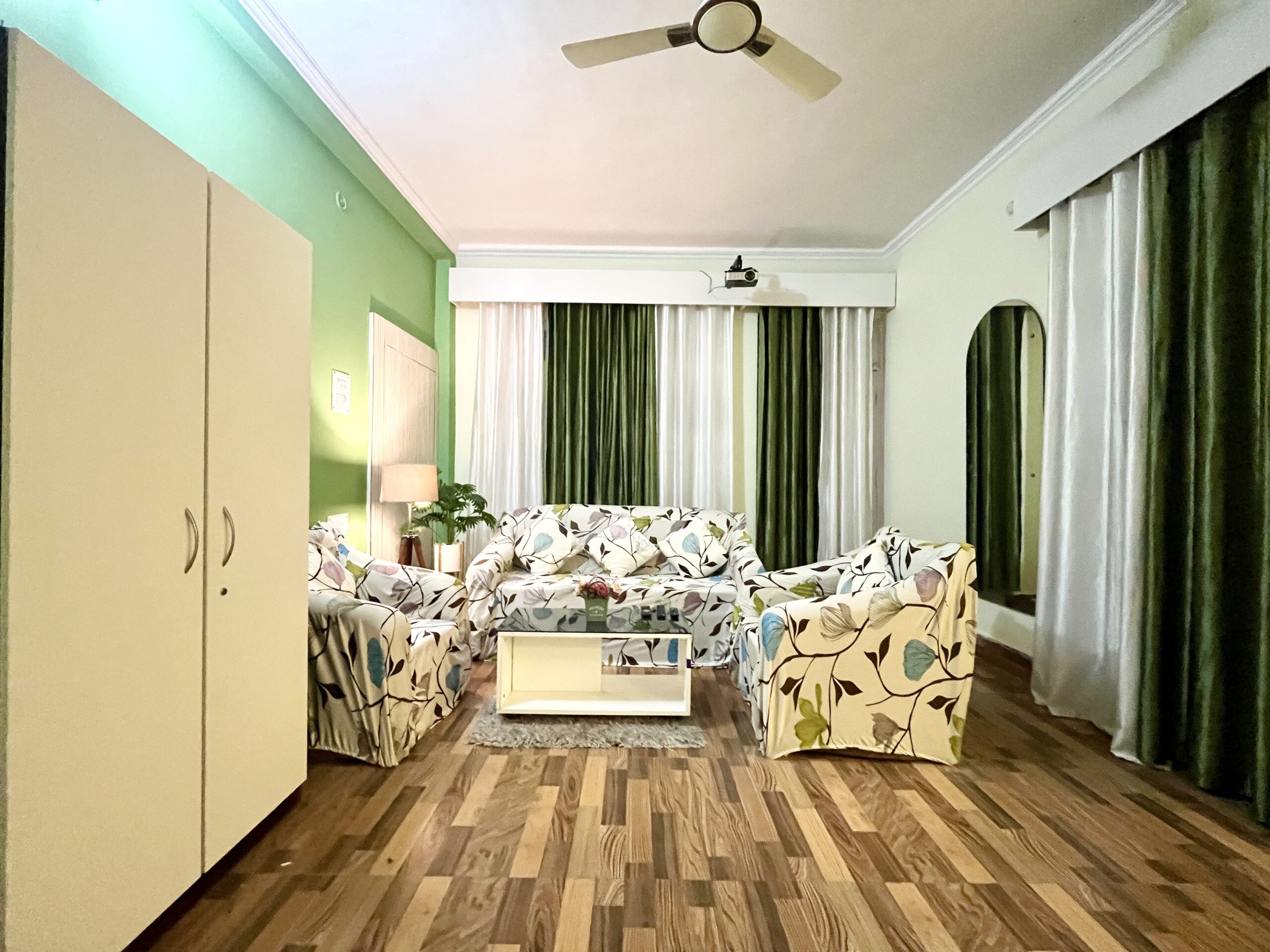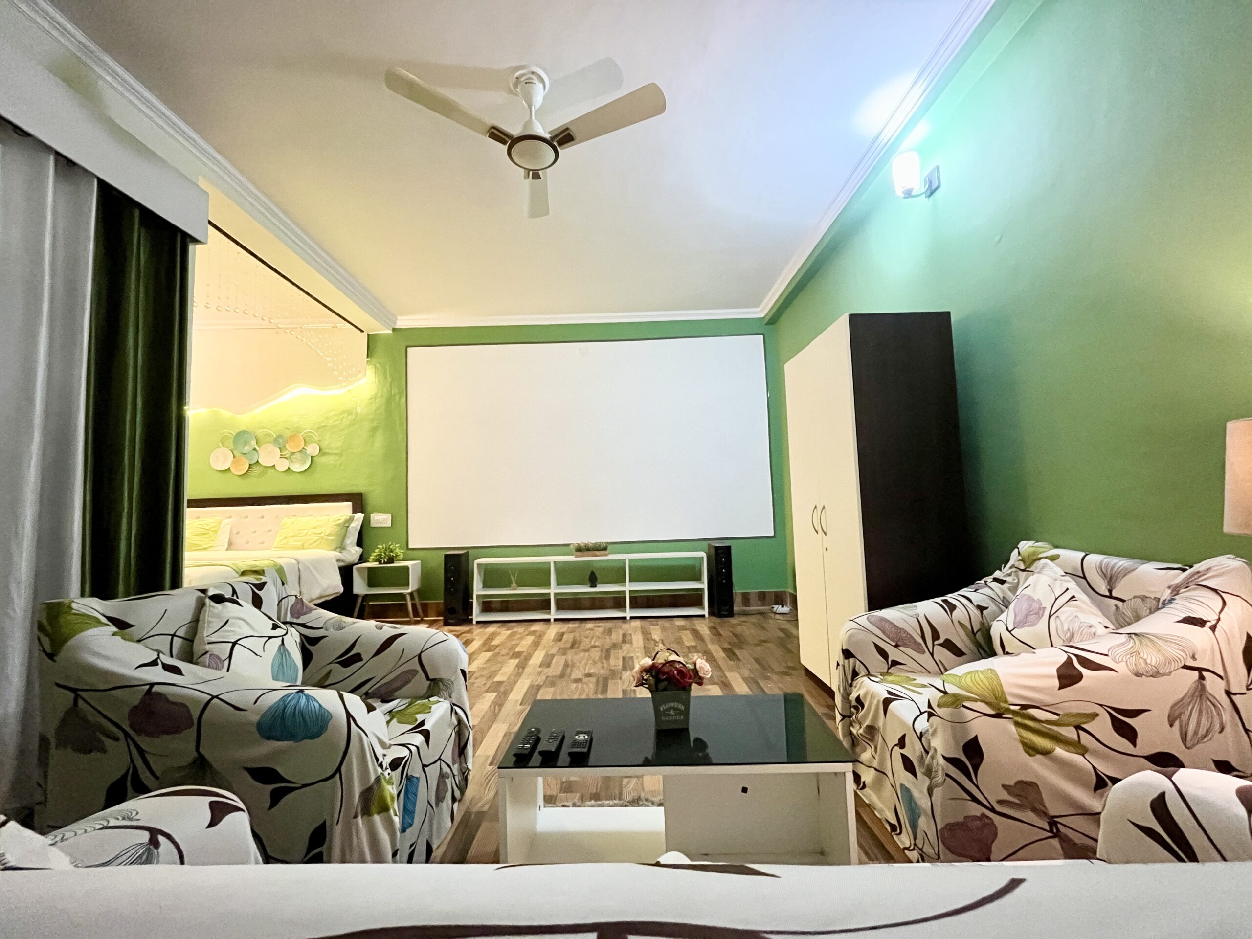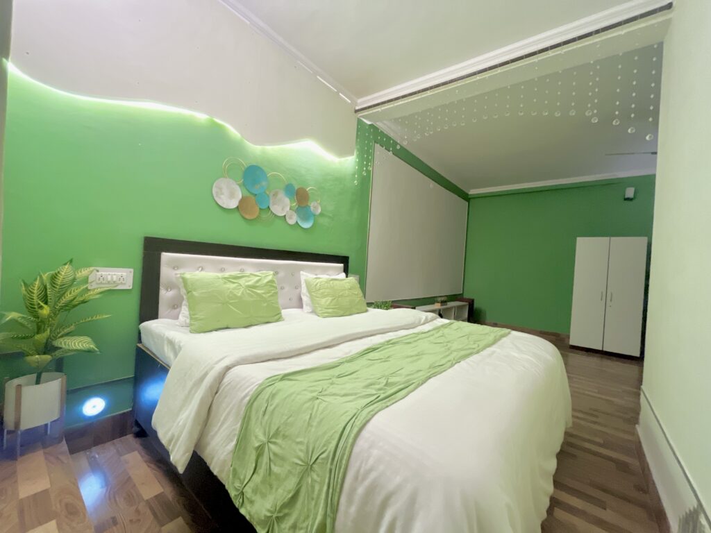 Experience elevated luxury in our Skyline Vista Room, where comfort meets entertainment. This room features a spacious balcony offering stunning panoramic views, perfect for relaxing with a cup of coffee. The room’s highlight is a private theater equipped with premium speakers, offering a personalized cinematic experience. Seamless Wi-Fi connectivity keeps you connected, making this space ideal for both leisure and work.