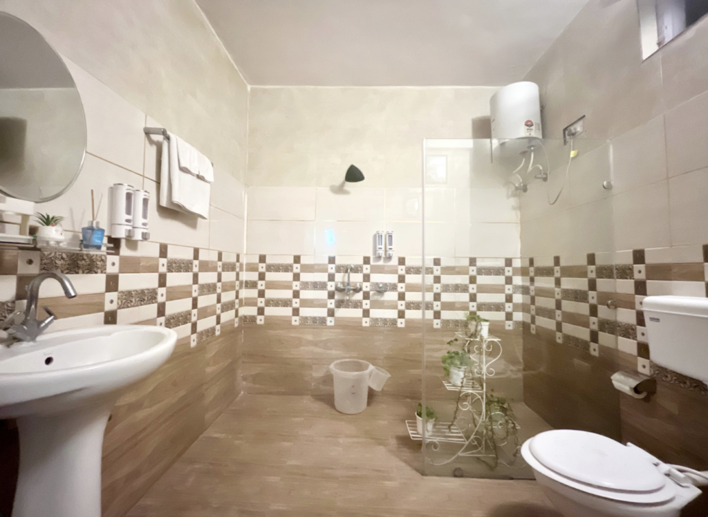 Attached washroom with modern amenities